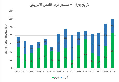 حصة صادرات الفستق الإيرانية والأمريكية إلى الشرق الأقصى