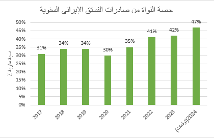 اتجاهات تصدير الفستق الإيراني (الحصة من الإجمالي)