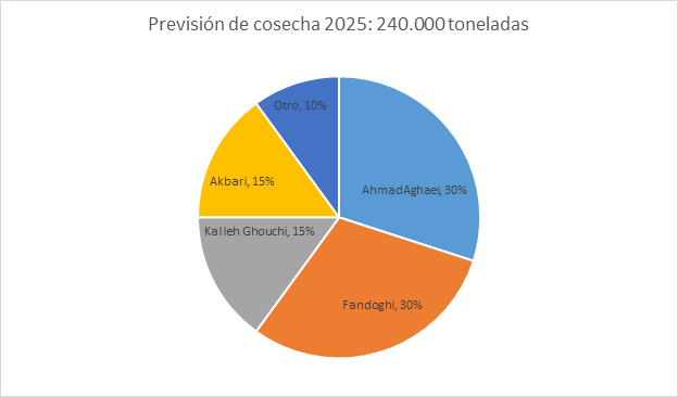 Distribución proyectada de la cosecha y variedad de pistacho iraní para 2025