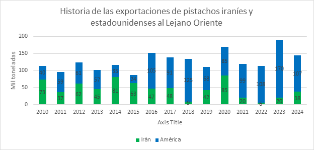 Participación de las exportaciones de pistachos de Irán y Estados Unidos al Lejano Oriente