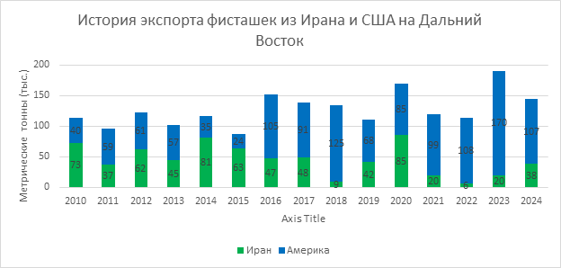 Доля экспорта фисташек из Ирана и США на Дальний Восток