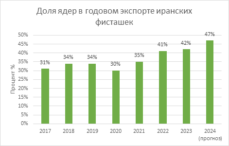 Тенденции экспорта иранских фисташек (доля от общего объема)