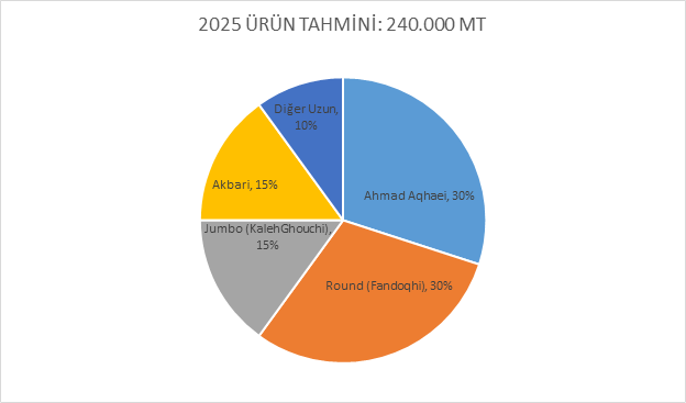 2025 Yılı İçin Tahmini İran Antep Fıstığı Mahsulü ve Çeşit Dağılımı